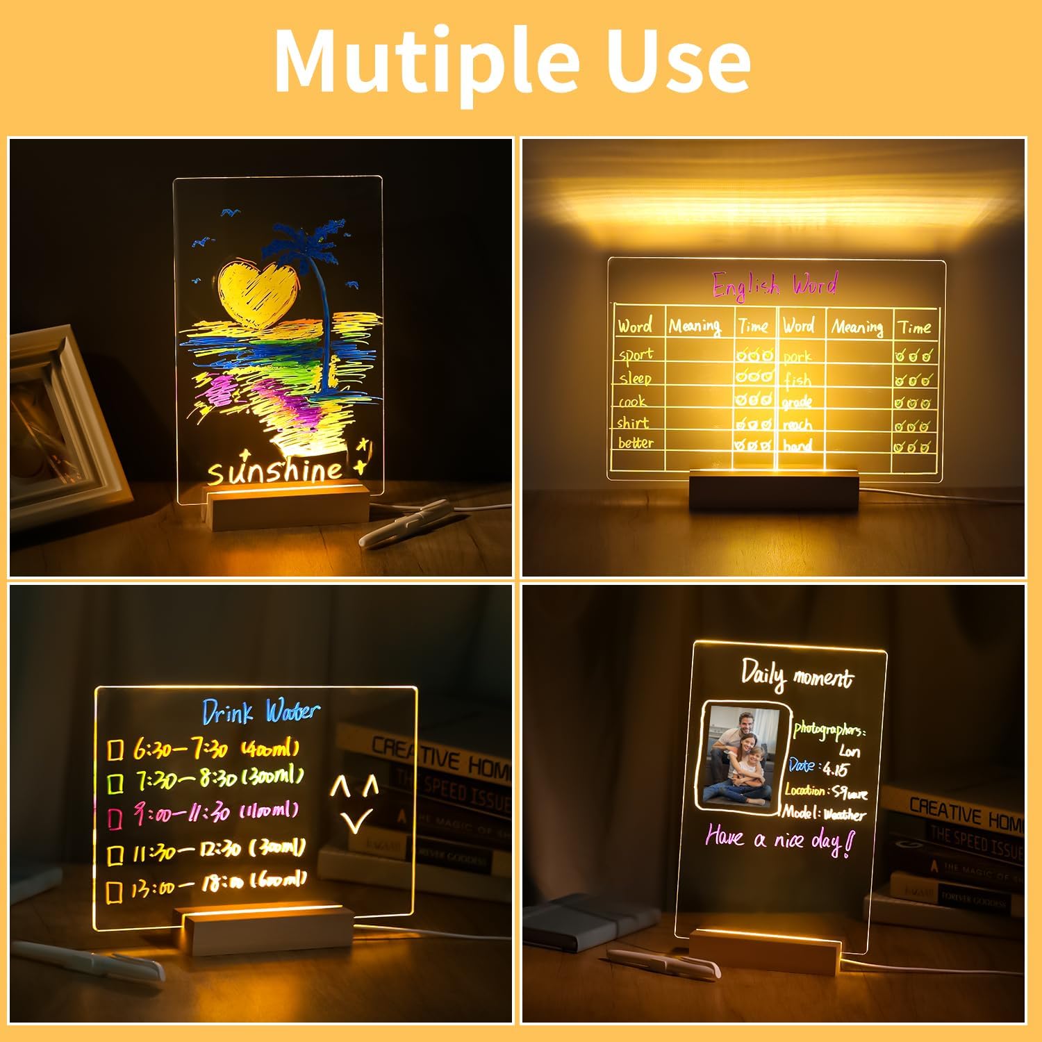 💡 لوحة الكتابة والرسم الأكريليك المضيئة LED
