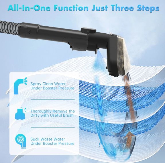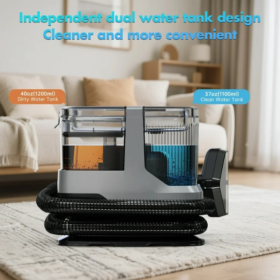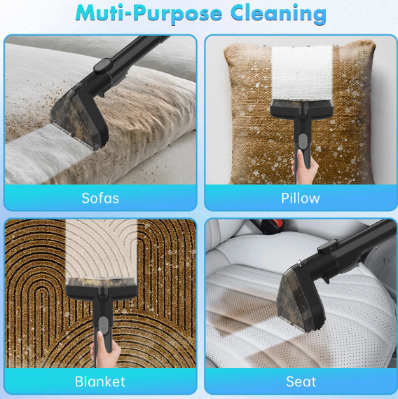 🔄 شفط قوي وتنظيف عميق — ينظف البقع والغبار المندمج في السجاد أو الكنب