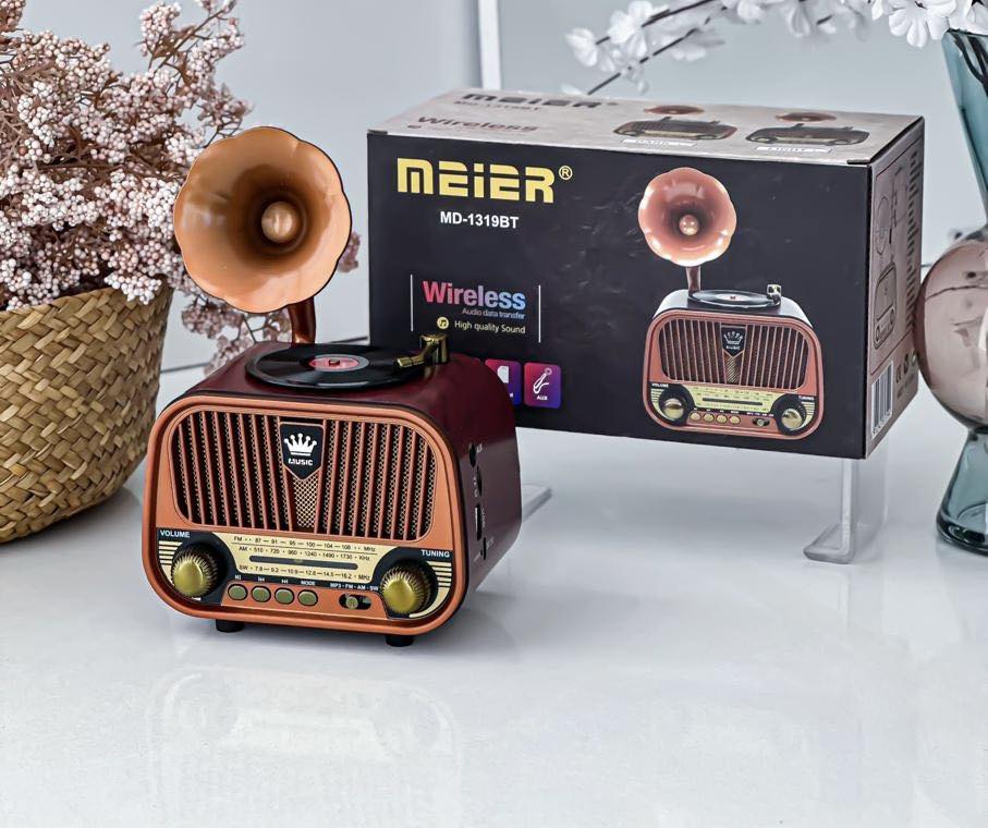 📻 راديو وسبيكر بلوتوث كلاسيكي – MEIER Vintage Phonograph (MD-1319BT)