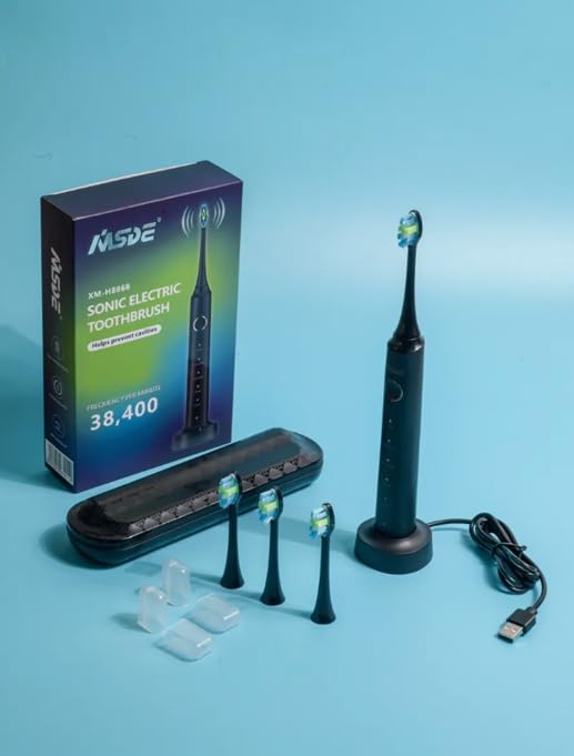 الفرشاة العادية بتسيب 70% من البلاك وبقايا الأكل بين أسنانك! انقل روتين نظافتك لمستوى تاني مع فرشاة الموجات الصوتية الذكية. بقوة 38,400 ألف اهتزازة في الدقيقة، هتفور الجير، تبيض أسنانك، وتعمل مساج للثتك، كل ده بـ 5 أنظمة مختلفة تناسب حتى الأسنان الحساسة.